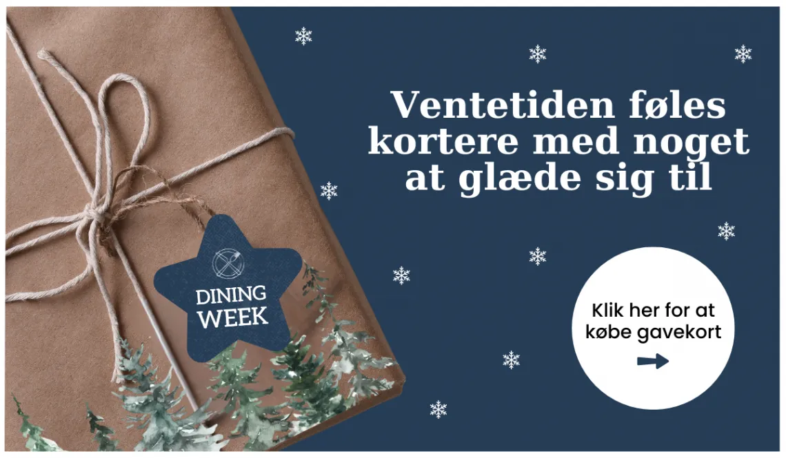 Giv eller ønsk dig et gavekort til Dining Week , så du kan nyde en særlig kulinarisk oplevelse sammen med venner eller familie. Du bestemmer selv beløbet på gavekortet og kan nemt og hurtigt printe det ud og glæde modtageren.